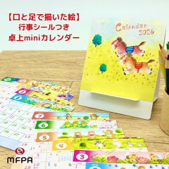 このミニカレンダーは、口と足で描いたアートの最小版とも言える、キュートなアイテム。置き場所を選ばないコンパクトサイズなので、デスクやちょっとしたスペースに置くだけで、空間が華やぎます。行事シールも付いているので、予定管理も楽しく行えます。2個セットでお得になるのも嬉しいポイント。お子様の勉強机や、ちょっとしたプレゼントにも最適です。