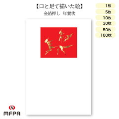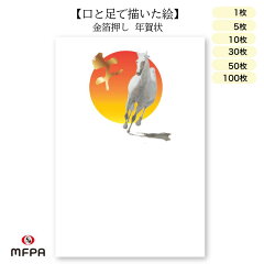 年賀状 はがき 障害者アート 2026年 午年は、2026年の干支である「午年」をモチーフに、縁起の良い金箔押しが施された絵葉書です。