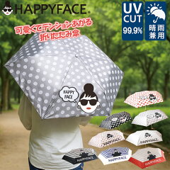 HAPPYFACE ハッピーフェイス 折りたたみ傘 晴雨兼用 折り畳み傘 レディース ドット ストライプ 水玉 モノグラム 可愛い 軽量 日よけ UVカット 紫外線t対策 日除け 日傘 雨傘 プレゼント