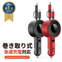 【楽天1位!】 巻き取り式充電ケーブル 車 シガーソケット 充電器 車 巻き取り 充電 iPhone カーチャージャー 車載 急速充電 リール 充電 スマホ アイコス イルマ カーシェア 車載充電器 usb 地震 車中泊 災害 震災 変換 lighting 急速