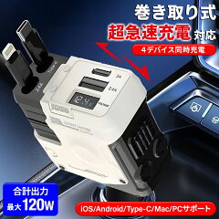 2025最新モデル 巻き取り式 充電ケーブル 車 シガーソケット ミニ 急速 充電 巻き取り カーチャージャー 充電器 iPhone 車載 急速充電 充電ケーブル アイコス イルマ カーシェア usb 地震 災害 震災 車中泊 変換 lighting