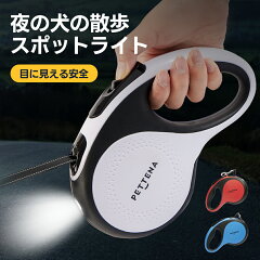 5m LED照明 伸縮リード ライト付 リード カジュアル 大小中型犬 犬のリード ペット 散歩 犬用 カジュアル 犬 大型犬 ストラップ ロングリード ドッグリード 自動巻き 散歩用ライト付 衝撃吸収 ワンタッチ格納 PETTENA