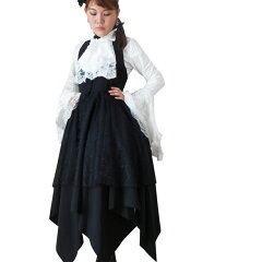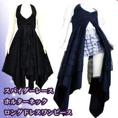 セール 送料無料 ワンピース ゴスロリ 魔女 コスチューム ダンス 衣装 コンテンポラリーダンス コルセット ロングドレス スパイダーレース ホルターネック 蜘蛛の巣レース レイヤード ロングジレ ベスト 執事 黒姫 ハロウィン クリスマス フロントボタン 前開き
