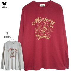 送料無料 ミッキー ミニー ドナルド デイジー プルート グーフィー ディズニー 長袖Tシャツ ロンT フレンズ ナチュラル レトロ アースカラー disney レディース シンプル ペアルック 男女兼用 かわいい 赤レンガ エンジ ベージュ 白 大人 TDL 春 秋