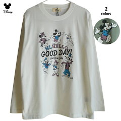 送料無料 ミッキー ミニー ドナルド デイジー プルート グーフィー ディズニー 長袖Tシャツ ロンT カットソー goodday ナチュラル くすみカラー アースカラー フレンズ disney レディース シンプル レトロ ペアルック 男女兼用 かわいい 白 カーキ 大人 TDL 春 秋