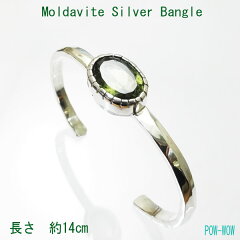 モルダバイト シルバーバングル【受注製作】オーバル ファセットカット シンプル 細め 叩きアーム ブレスレット シルバーアクセ工房 銀細工師 パウワウ代官山 手作り【13.5~16cm】