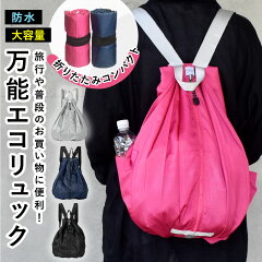 【 送料無料 】 エコリュック リュック エコバッグ 防水 大容量 丈夫 ブラック グレー ピンク ネイビー ジャバラ 折りたたみ 簡単 コンパクト 約210g 男女 兼用 おしゃれ 便利 サブバッグ ケース入り 敬老の日 お祝 プレゼント 最適 簡単収納 多機能 スマホポケット BOBOKEY