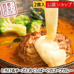 【C配送】スープカレー 奥芝商店 とろけるチーズとおくしばーぐのスープカレー(1箱2パック入り約1,000g) 中辛 2人〜4人前 人気店 冷凍 カレー お取り寄せグルメ ギフトに最適 ボックス入り 冷凍湯煎調理 北海道