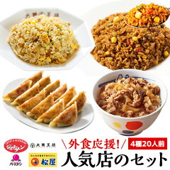 【C配送】人気外食店詰め合わせセット 4種20人前 総重量3kg超 ジョナサン スパイシーメキシカンピラフ 松屋 大阪王将 炒めチャーハン バーミヤン 本格生餃子 外食応援 セット 食品 フードロス 食品ロス グルメセット