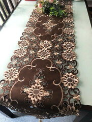 ブラウン≫40X180cm カットワーク刺繍/テーブルランナーbrown