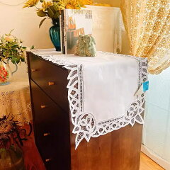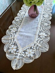 テーブルセンター40X130cm テーブルコーディネート、 周りは総レース刺繍 新入荷 NEW