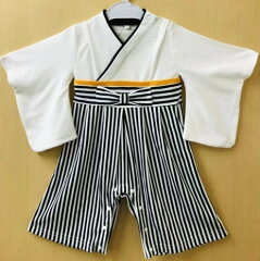「プレ付き」◇60/70/80/90cm 羽織はかまロンパース カバーオール 男の子 ホワイト色 タイプ1