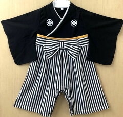 「プレ付き」◇60/70/80/90cm 羽織はかまロンパース カバーオール 男の子 黒色 タイプ3 W