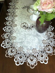 テーブルコーディネート、テーブルセンター50X110cm 周り、中心は総レース刺繍 再入荷