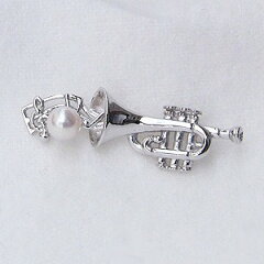 【ポイント10倍】パール ブローチ フォーマル トランペット 楽器 メンズ ブローチ ラペルピン タイニーピン ピンズ ピンブローチ パール 真珠 アコヤ あこや ラッピング無料 送料無料 プレゼント ギフト ジュエリー ハロウィン