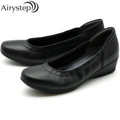 エアリーステップ Airy step プレーンシューズ スリッポン 本革 レザー ウェッジソール レディース ブラック 黒 22-25 7558