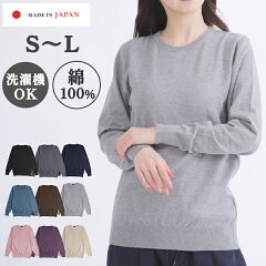 【10/20★P5倍】コットン100 ニット 薄手 素肌 日本製 洗濯機 家 洗い OK 女 セーター レディース メンズ 柔らかい シンプル プルオーバー おしゃれ 贈り物 大きめ 小さめ S L ロンT カットソー 長袖 家着 ルームウェア パジャマ 綿100 チクチクしない コットン100%