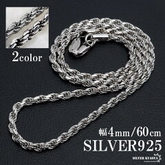 シルバー925 ロープチェーン ネックレス 幅4mm 60cm 燻し加工 silver 2カラー フレンチロープ ネックレスチェーン ツイスト 太め 重厚感 シルバーネックレス メンズ 男性 金属アレルギー対応