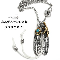 ステンレス ダブルフェザーネックレス メンズ ペンダント シルバー 太陽 ターコイズ フェザーネックレス 特大 フェザー フェザーネックレスカスタム 人気 父の日