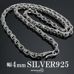 シルバー925 唐草模様 ネックレス アラベスク ペーパーチェーン 幅4mm シルバー ネックレスチェーン 重厚 フックタイプ シルバーネックレス メンズ 男性 金属アレルギー対応
