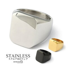 高品質ステンレス シンプル 印台リング メンズ スタンプ 指輪 ゴールドリング シルバー ブラック スクエア 四角 金 銀 黒