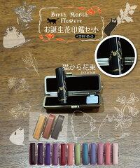 印鑑 実印 銀行印 ネコ はんこ 作成 ●【猫から花束 誕生日印鑑セット】黒水牛の印鑑 印鑑ケース付セット /黒水牛芯持圧縮印鑑10.5/12/13.5/15 mm長さ60ミリ【誕生 日 月 花】女性用 子供 赤ちゃん おしゃれ ハンコ ねこ【季節の花 出産祝い】プレゼント 入籍 botanical