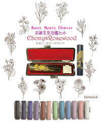 印鑑 実印 銀行印 認印 はんこ 作成 【かわいい印鑑 花】 エボニー/ローズウッド 木の印鑑 印鑑ケース付セット サイズ/10.5/12/13.5/15 mm長さ60ミリ【誕生 日 月 花】女性/男性用 子供 赤ちゃん おしゃれ ハンコ 印【季節の花 出産祝い】プレゼント 贈答 入籍 botanical