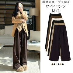 ワイドパンツ コーデュロイ ワイドレッグパンツ レディース シンプル リラックス ロング プリーツパンツ おしゃれ ガウチョパンツ カジュアル 美脚 無地 着痩せ 体型カバー春 秋 冬