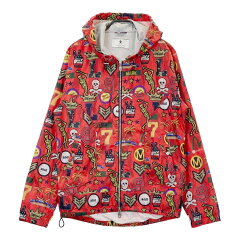 MARK&LONA マークアンドロナ 裏地付 長袖 フード付きジップジャケット 総柄 レッド系 XL 【中古】ゴルフウェア メンズ