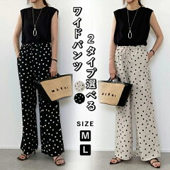 ワイドパンツ レディース 水玉柄 ドット柄 パンツ ドット ロング丈 パンツ 水玉 大きいサイズ ボトムス ゆったり 長ズボン ストレート 美シルエット ワイドパンツ カジュアル ウェストゴム 涼しい 春夏秋 薄手