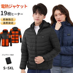 【土日祝日も休まず毎日出荷★寒さ対策】電熱ジャケット 19枚ヒーター モバイルバッテリー付き 電熱ベスト長袖 フード付き M~5XL ヒータージャケット ヒーターベスト 加熱ベスト長袖 防寒対策 ヒーター付きベスト 男女兼用 USB バッテリー給電 温熱ベスト プレゼント 暖かい