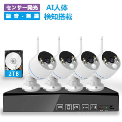 ★限定12%OFFクーポン!★ 防犯カメラ4台セット ハードディスク2TB内蔵 1080P 200万画素 センサー発光 動体検知PIR 人感センサー 双方向通話 録音 タイプ IP66防水 家庭 屋外対応 送料無料 プレゼントに