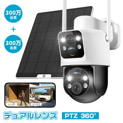 【新品数量限定13980円→9980円】【デュアルレンズ & 両監視画面 & 360°死角なし監視】 防犯カメラ 屋外 ソーラー 監視カメラ 屋外 PIR 動体検知 声光威嚇 工事不要 360°広角撮影 PTZカメラ バッテリー 双方向音声 家族共有 IP66防水警報通知 夜間カラー撮影