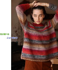 最後にご紹介するのは、毛糸 アルパカレジェーログラデーションで編む透かし模様の落ちないショール&段々がおもしろい帽子 セット ハマナカ・リッチモア 手編みキット 無料編み図 編み物キット 極太毛糸 マフラー ストール ニット帽。
