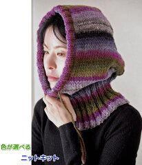 顔周りを調整できるひも通し付きで、機能性も抜群。ひとつで二役こなす、おしゃれで実用的なアイテムが、編み物初心者の方でも挑戦しやすいキットとして提供されています。毛糸と無料編み図がセットになっているので、届いたその日から編み始めることができます。