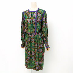 ■美品■Yves Saint Laurent rive gauche イヴサンローランリヴゴーシュ ヴィンテージ ワンピース サイズ38 シルクワンピース 総柄 フランス製 ブランド古着【中古】20240617/RA0007