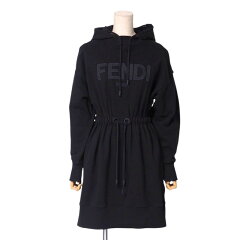 ■美品■FENDI フェンディ ワンピース サイズXXS スウェット パーカー ワンピース FF ダブルF ズッカ ロゴ コットン ブラック イタリア製 ブランド古着【中古】20241203/RA2303