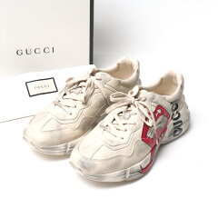 ■美品■GUCCI グッチ Rhyton ライトン スニーカー サイズ10 マウス リッププリント ロゴ ヴィンテージ加工 レザー 靴 ブランド古着【中古】20250829/RA5939