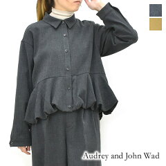 Audrey and John Wad オードリーアンドジョンワッド TRツイードライク裾ギャザーブラウス L5110 レディース【グレー/キャメル】【送料無料】