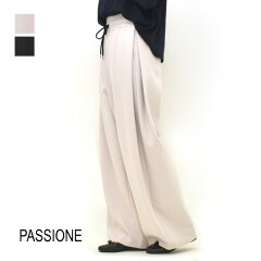 PASSIONE パシオーネ サイドタックイージーワイドパンツ 536629 レディース【ベージュ/ブラック】【送料無料】