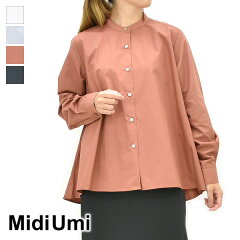 Midiumi ミディウミ Aラインバンドカラーシャツ 長袖 3-739996 レディース【ホワイト/ライトブルー/ピンク/ブラック】【送料無料】
