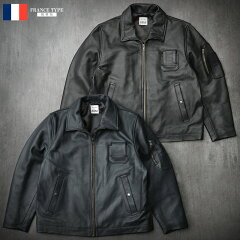 フランス軍タイプ パイロットレザージャケット JJ382YN フライトジャケット ライダースジャケット メンズ 男性 アウター ブルゾン 本革 皮革 牛革 カウハイド カジュアル ブラックグレー レプリカ 復刻